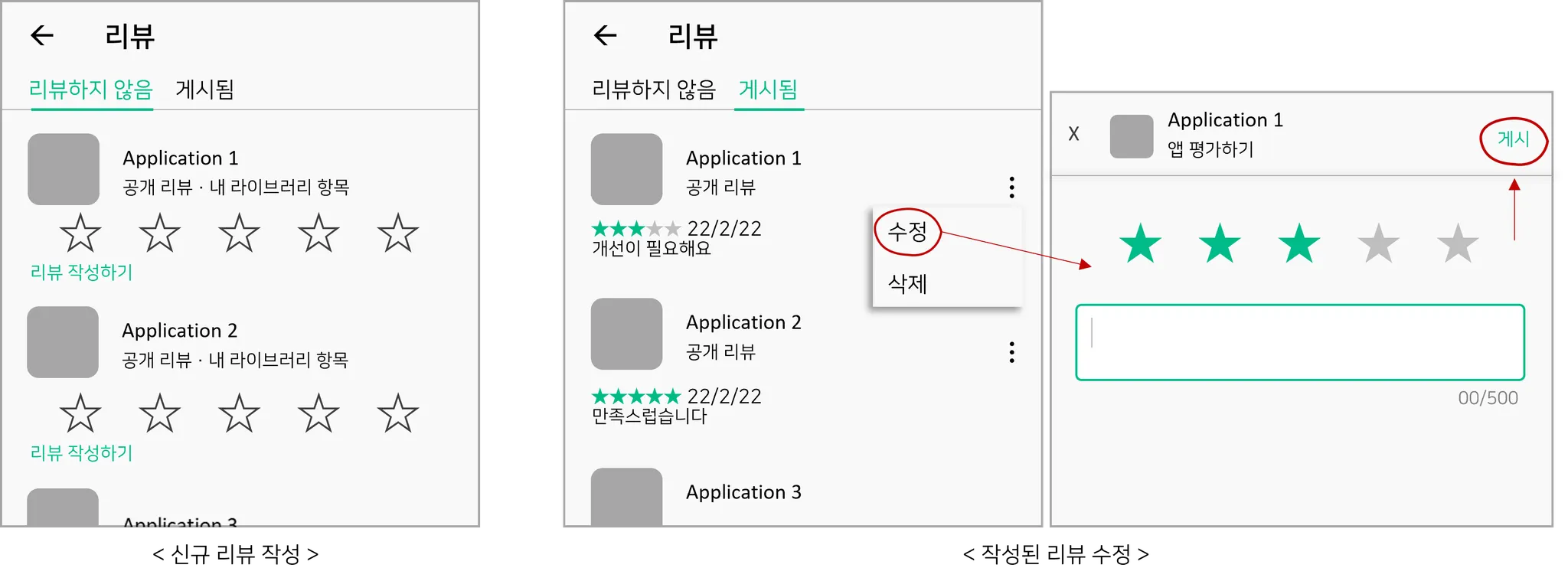 그림 4 : 구글플레이 기준 어플리케이션 리뷰 작성 또는 수정 화면 예시