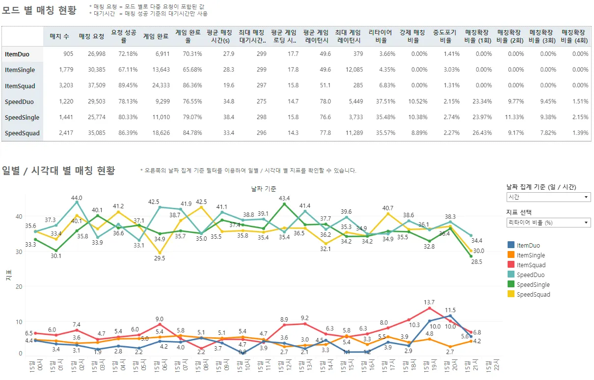 각 게임 특성에 맞는 매칭 품질을 고도화해 나가는 작업 (분석)