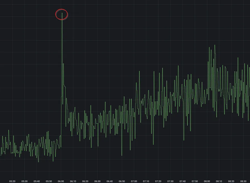 그림 3: 오전 6시가 되자 갑자기 급증한 트래픽으로 인해 리소스 사용률이 증가한 모습