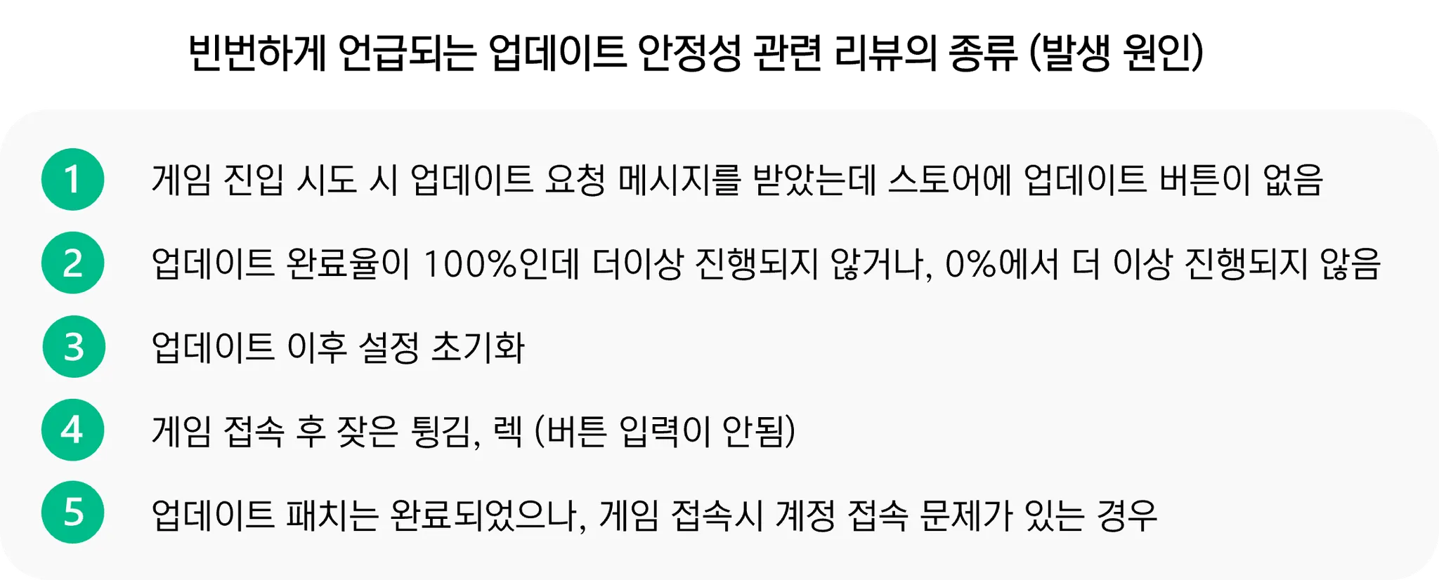 그림 21 : 빈번히 언급되는 업데이트 안정성 관련 리뷰의 종류
