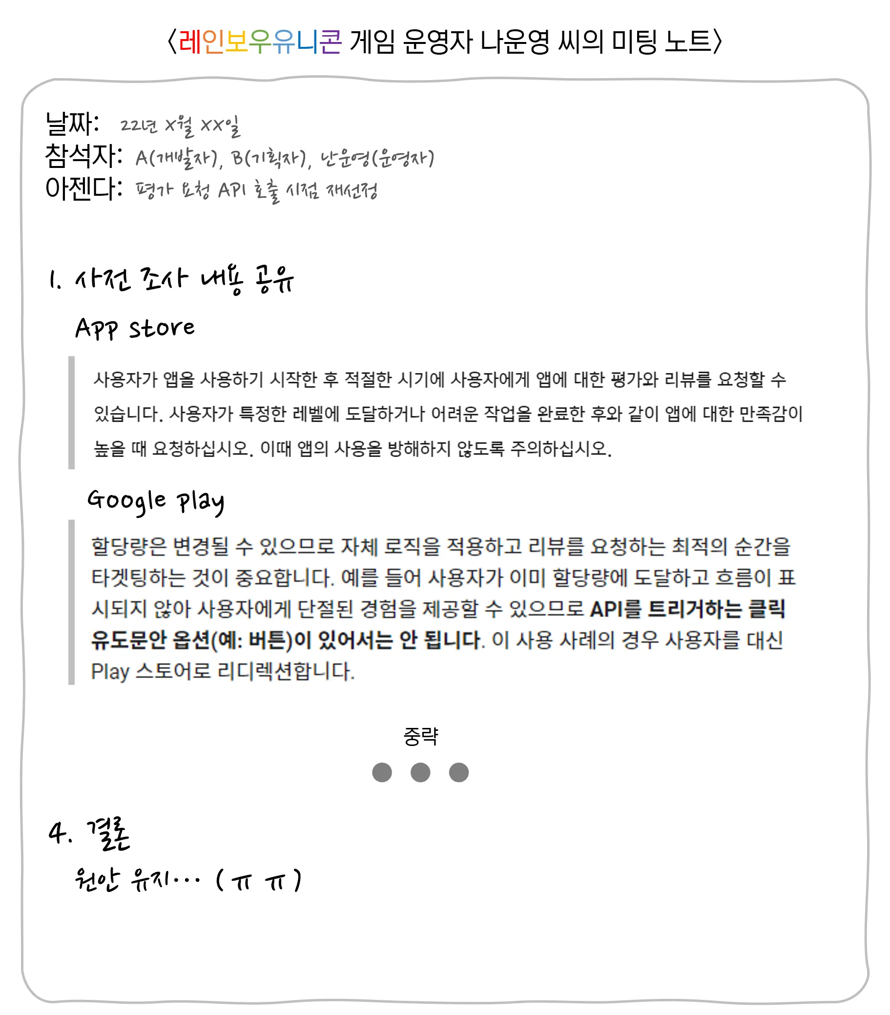 따라서 유저가 자발적으로 스토어 앱을 열고 게임 페이지에 들어가 별점 평가를 남기는 경험과,