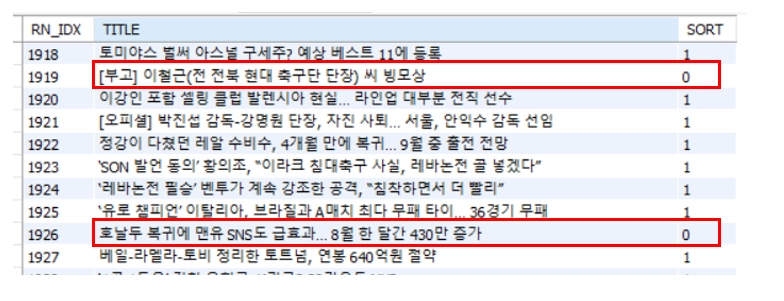 그림 13 : 비정상 뉴스가 필터링 된 예시