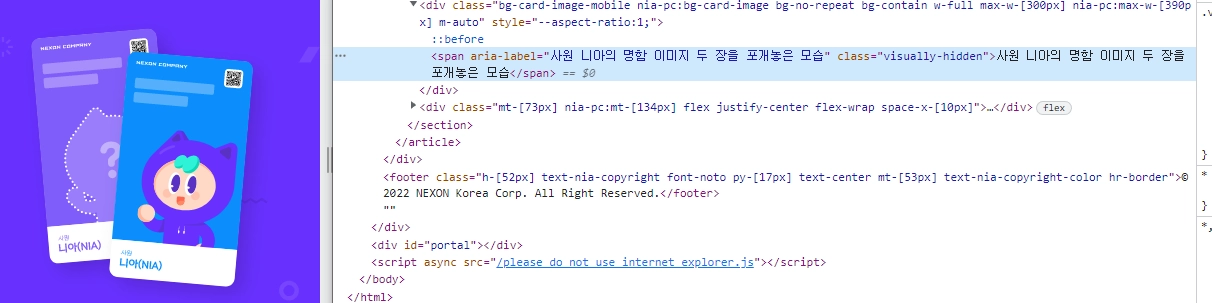 접근성을 보장하고자 버튼과 에셋, (특히) 명함 부분에 자세한 설명을 달아 놓았습니다.