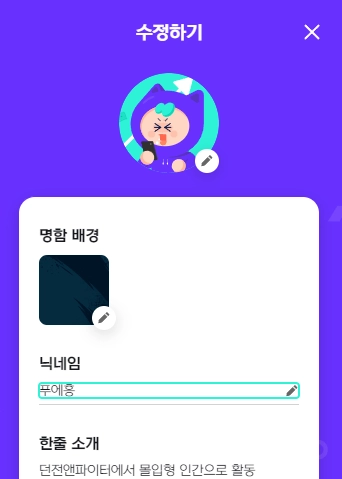 본인의 명함인데 닉네임이 가려서 안 보이다니 있을 수 없는 일이죠!