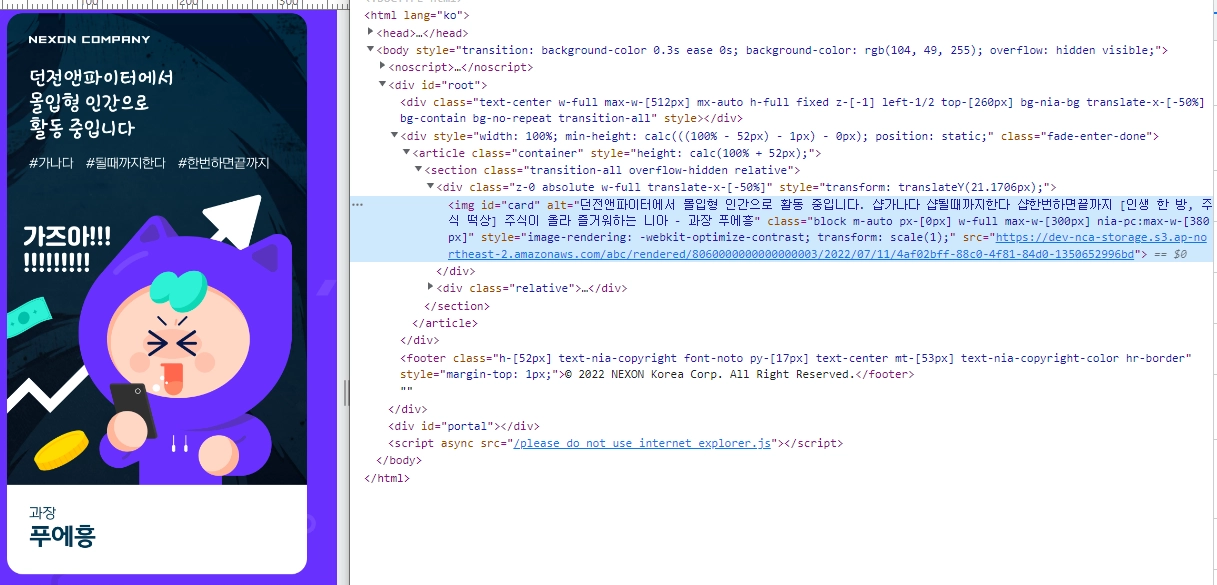마케팅컨텐츠개발팀에서 웹 애플리케이션 엔지니어로 일하고 있는 최종근, 연소라입니다. 저희 팀에서는 넥슨 게임을 플레이하면서 생기는 수많은 데이터를 조합하여 유저에게 가치 있는 개인화 컨텐츠를 전달해 주는 일을 합니다. 이 글에서는 NIA 서비스, 그중에서 웹 어플리케이션을 개발하면서 크고 작은 이슈를 어떻게 기술적으로 풀어나갔는지 공유해 드리겠습니다.