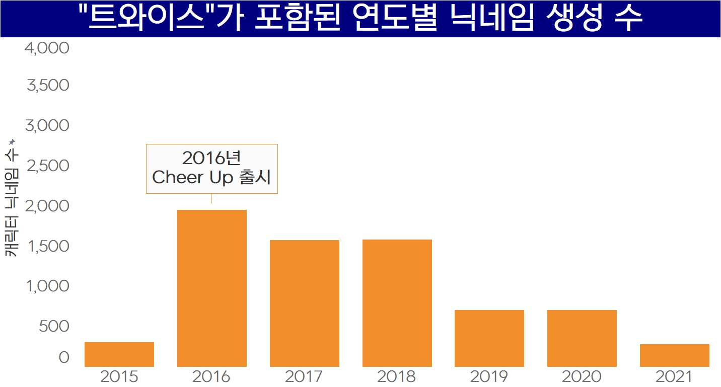 그림4 : “트와이스”가 포함된 연도별 닉네임 생성 수