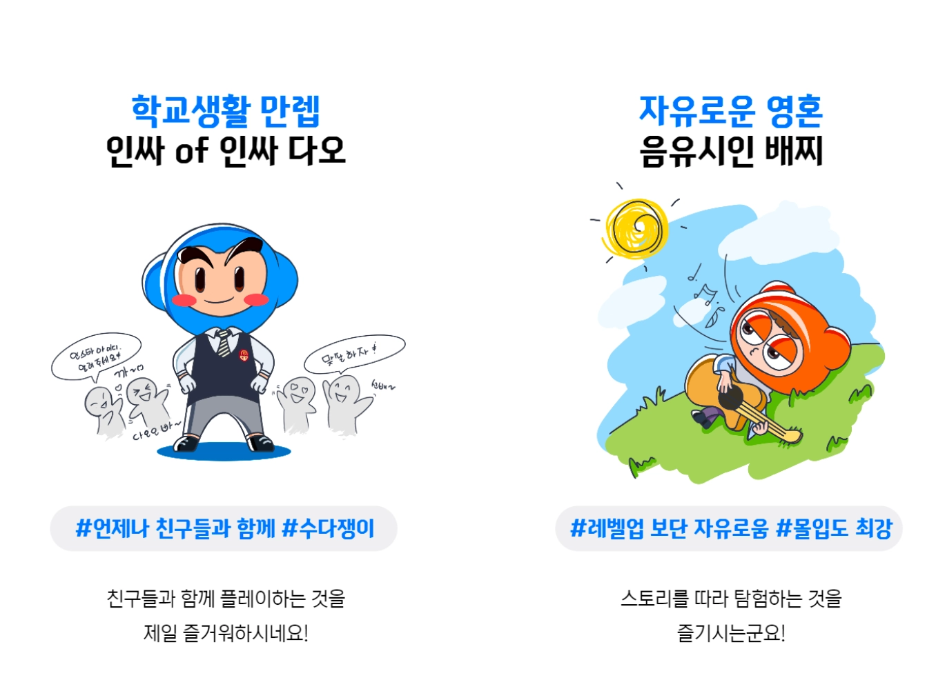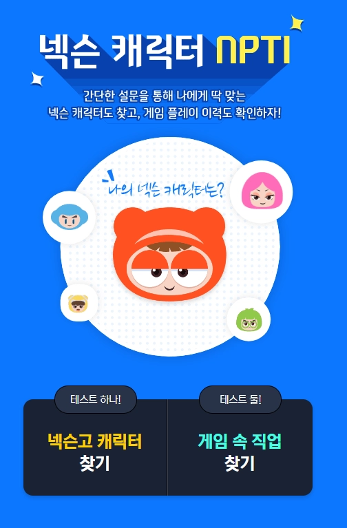 유저는 결과 페이지에서 자신의 테스트 결과를 확인할 수 있는데요. 해당 페이지에는 NPTI 설문 결과에 따라 개인 성격과 게임 성향을 대표하는 캐릭터가 노출됩니다. (MBTI는 모두 동일한 결과 이미지가 노출되죠.)