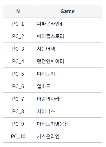 그림 17 : 선정된 템플릿 생성 PC게임 10개