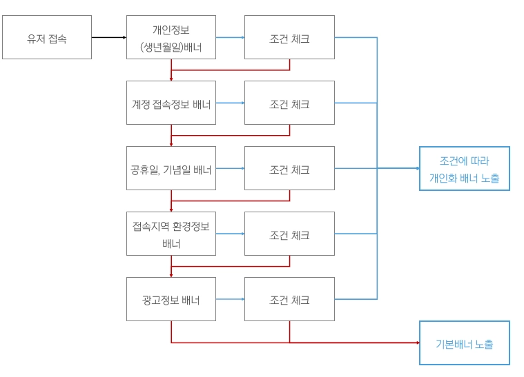 특정 조건에 해당될 경우 조건별 개인화 배너를 노출하고, 해당되지 않을 경우 상시배너(기본배너)를 노출