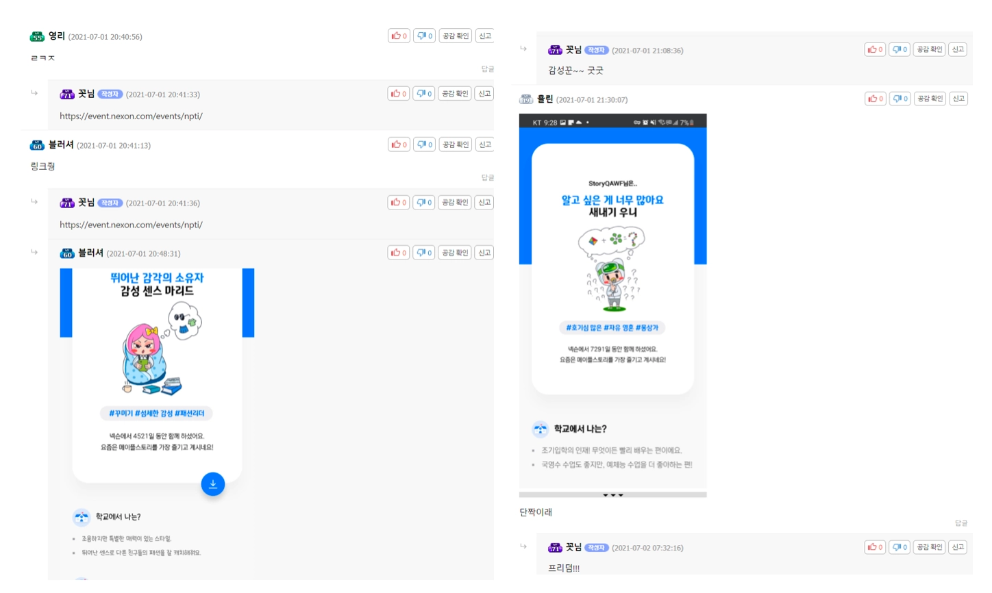 실제로 이벤트 후 유저들은 결과 화면을 스크린샷 또는 저장해서 자신이 가장 많이 하고 있는 게임과 전체 플레이 타임, 가입 기간을 자랑하거나 비교하는 커뮤니티 활동이 일어나기도 했습니다.