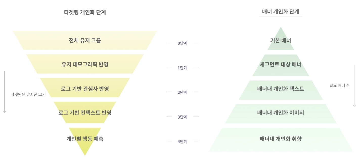 그림 7 : 타겟팅 개인화 단계, 배너 개인화 단계 구분