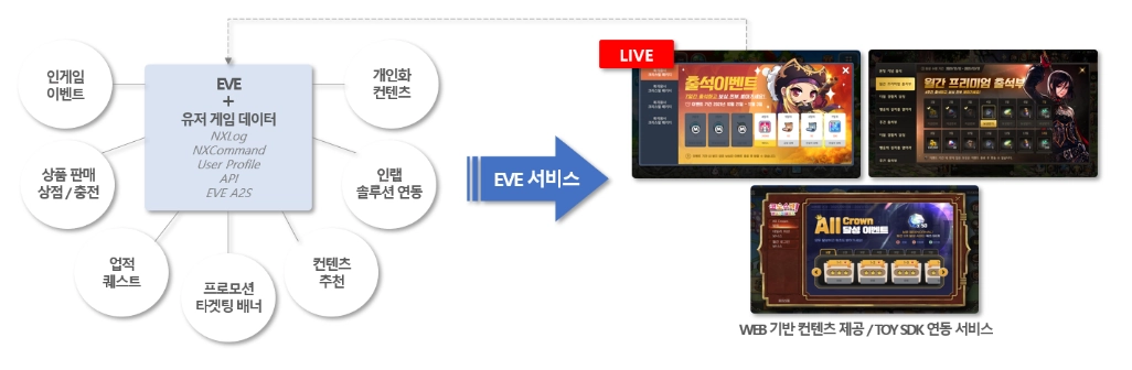 재현님 이벤트플랫폼팀은 게임에서 이벤트를 빠르고 효과적으로 진행하기 위해 만들어진 ‘EVE’를 서비스하고 있습니다. 기존에 게임에서 자체적으로 이벤트 컨텐츠를 개발하고 진행하려면, 개발 기간도 오래 걸렸고 새로운 이벤트를 진행하기 위해서는 게임 자체를 업데이트해야 하는 등의 문제점이 있었습니다. ‘EVE’는 이러한 문제점을 해결하기 위해 이벤트를 웹 기반으로 진행할 수 있도록 지원합니다.
