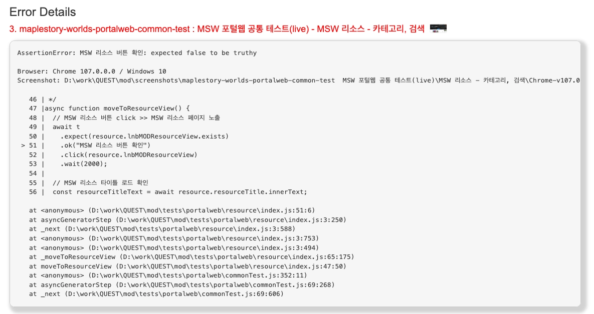 자동 테스트를 일정 주기로 계속 수행하다보면 간헐적으로 발생하는 문제를 포착할 수 있었습니다.
