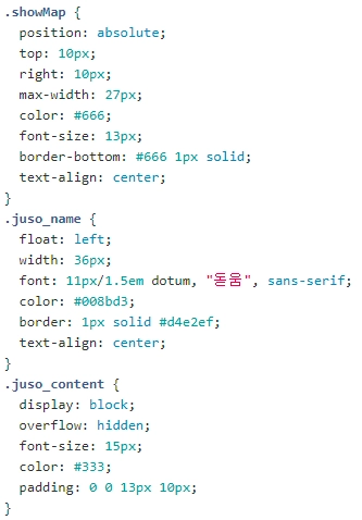 카멜 케이스(showMap), 스네이크 케이스(juso_name)를 혼용하고, 주소를 juso라고 번역해 놓은 처참한 모습입니다. 코딩 컨벤션의 중요성을 절실히 깨닫게 해 주었던 예시죠.