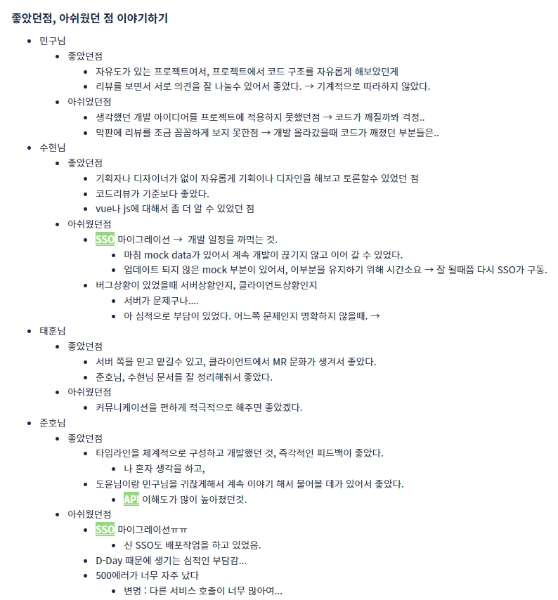 이 부분은 ‘프로젝트 개선’이라는 회고의 목적을 위해 꼭 지켜졌으면 하는 바람입니다.