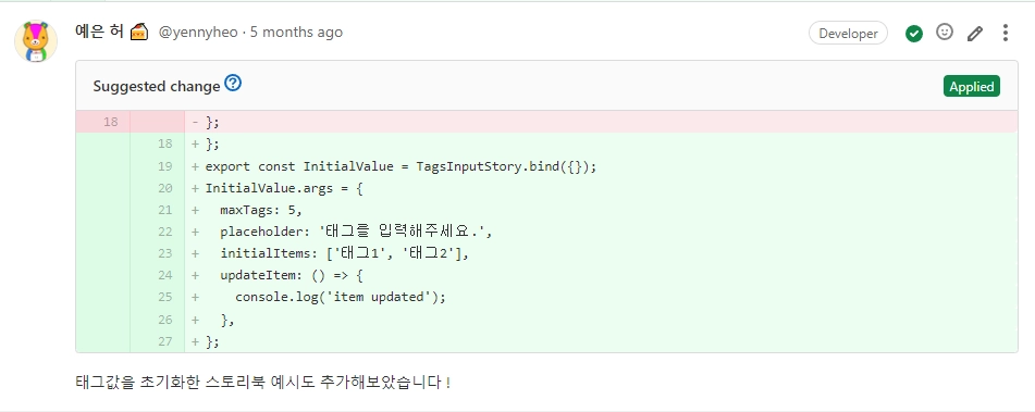 suggest changes를 활용하면, 제안한 코드를 바로 merge할 수 있어요!