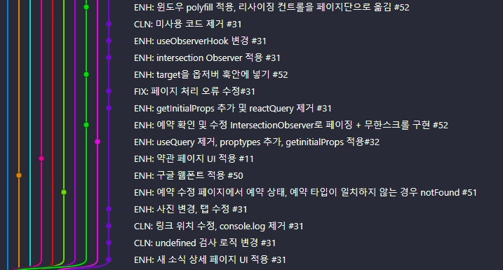 물론 아쉬운 점은 있습니다. 추후 100년 뒤 팀원 한 명이 커밋 한 줄만 봤을 때 어느 파일의 어느 부분을 수정했는지 알 수 있는 수준까지는 아니기 때문입니다. 커밋 내용을 좀 더 자세하게 쓰는 습관을 들이면 더욱 좋을 것 같습니다.