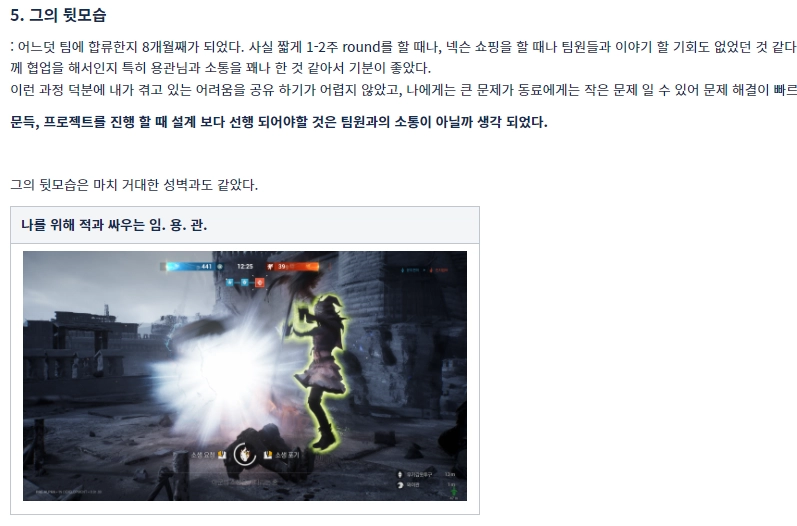 그림 17 : 게임 제작 플랫폼 MOD 프로젝트를 맡은 팀원 기혁님의 회고 中 좋았던 점