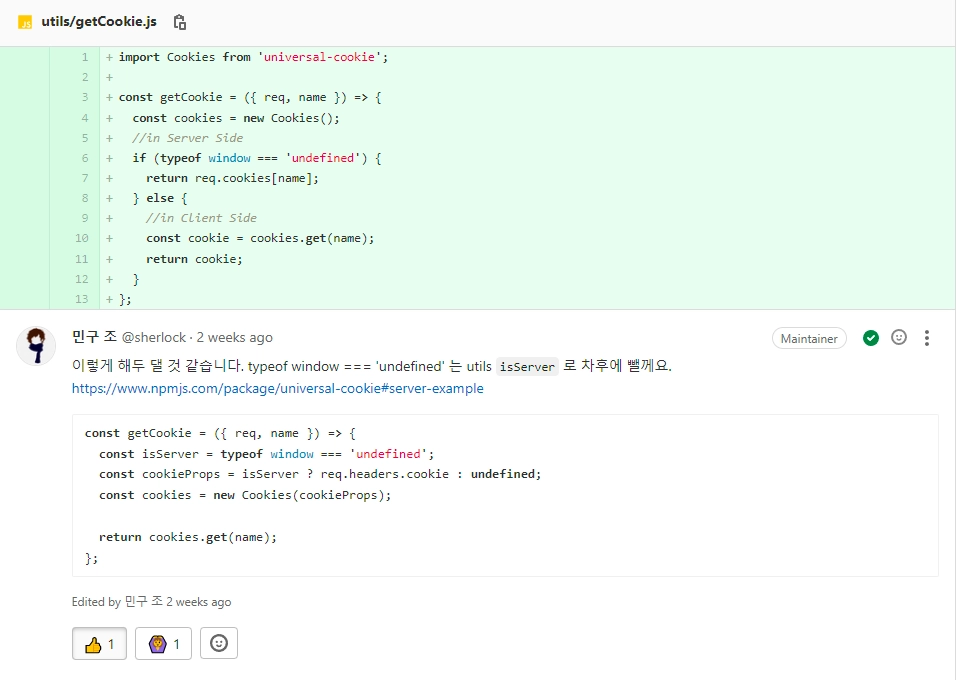 3. 리뷰 요청자는 코멘트 확인 후, 코드를 수정하고 재확인 요청을 한다.