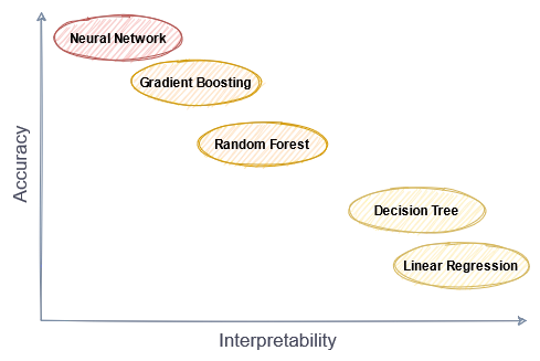 이처럼 머신러닝에서 모델의 예측 정확도와 설명 가능성이 trade-off 관계를 보인다는 것은 정설처럼 받아들여져 왔고, Accuracy - Interpretability Trade-off라는 용어도 존재합니다. 즉, 우수한 예측 성능과 설명 가능성을 모두 가지는 모델은 없다고 생각되었습니다.
