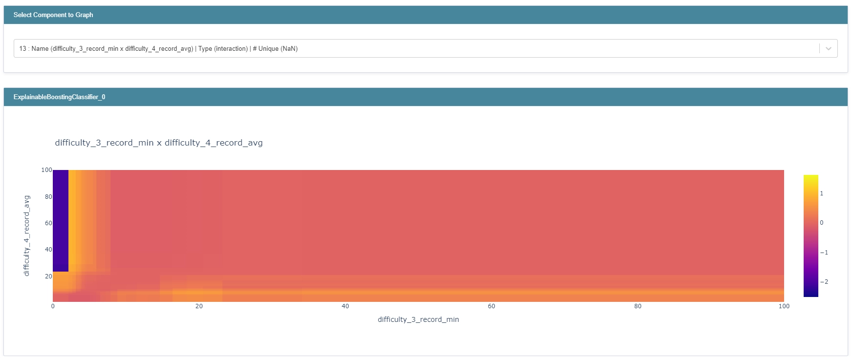 상단 드롭다운 메뉴를 통해서 pairwise interaction term도 heatmap 형태로 살펴볼 수 있습니다. 위 heatmap은 난이도 3 트랙의 최고 기록과 난이도 4 트랙의 평균 기록의 interaction term의 출력값을 시각화한 것입니다.