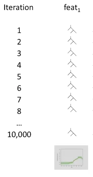 이런 형식으로 모든 feature를 순차적으로 사용해서 decision tree를 학습 시키면 한 학습 iteration이 완료됩니다. EBM을 학습 시킬 때는 학습 iteration 내의 feature 사용 순서가 무의미하도록 아주 작은 learning rate를 사용합니다.