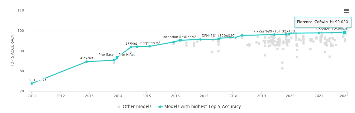 그림 1 : Image Classification on ImageNet(Top 5 Accuracy)[3]