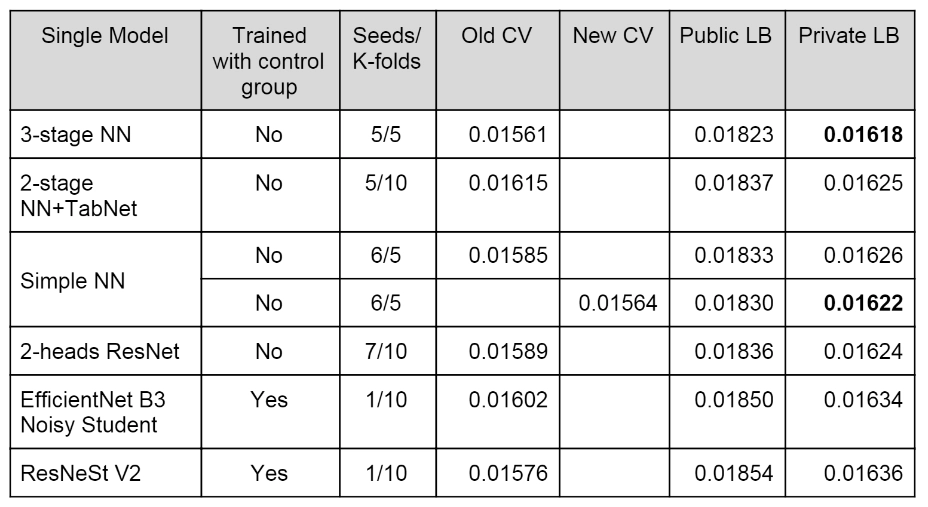 캐글에서 2020년 있었던 대회인 MoA(Mechanisms of Action Prediction)[11] 우승팀이 TabNet을 사용했습니다. 대회나 우승 솔루션에 대한 자세한 내용보다는 성능과 결과 위주로 소개 드리겠습니다.