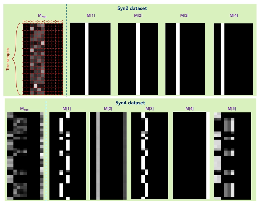 그림 6 : Feature importance masks and the aggregate feature importance mask example on Syn2 and Syn4[1][8]