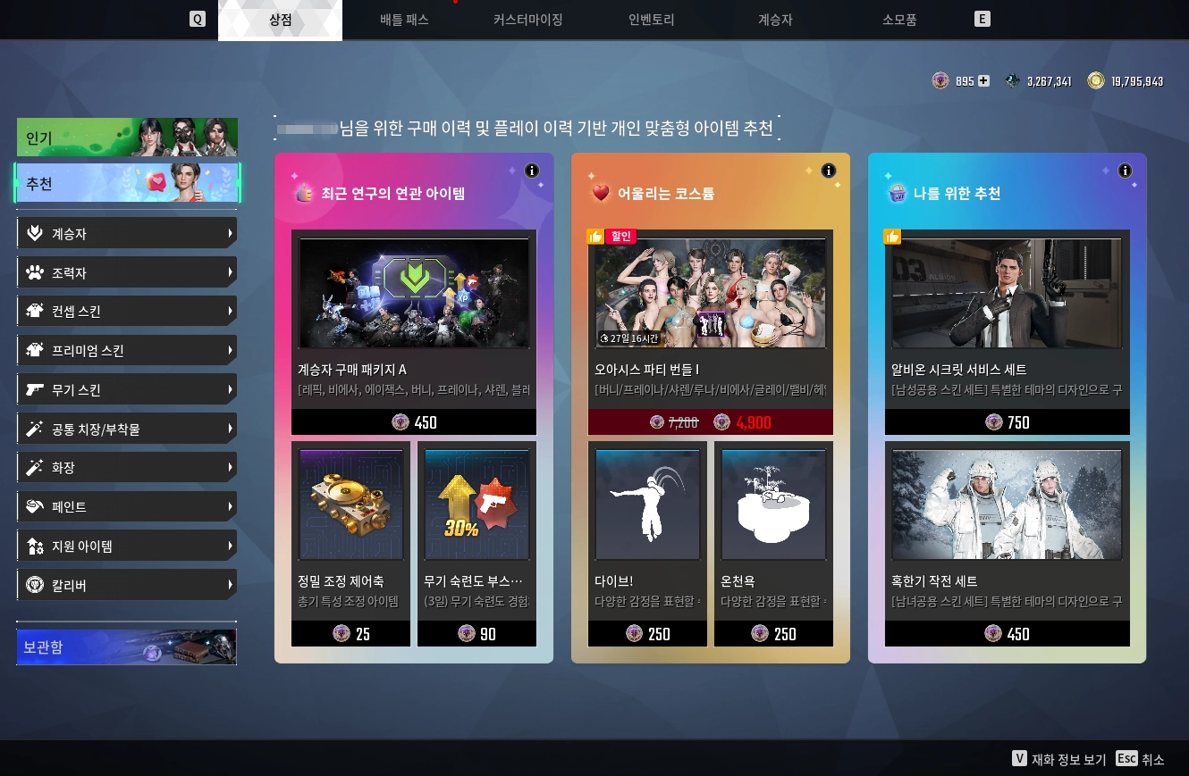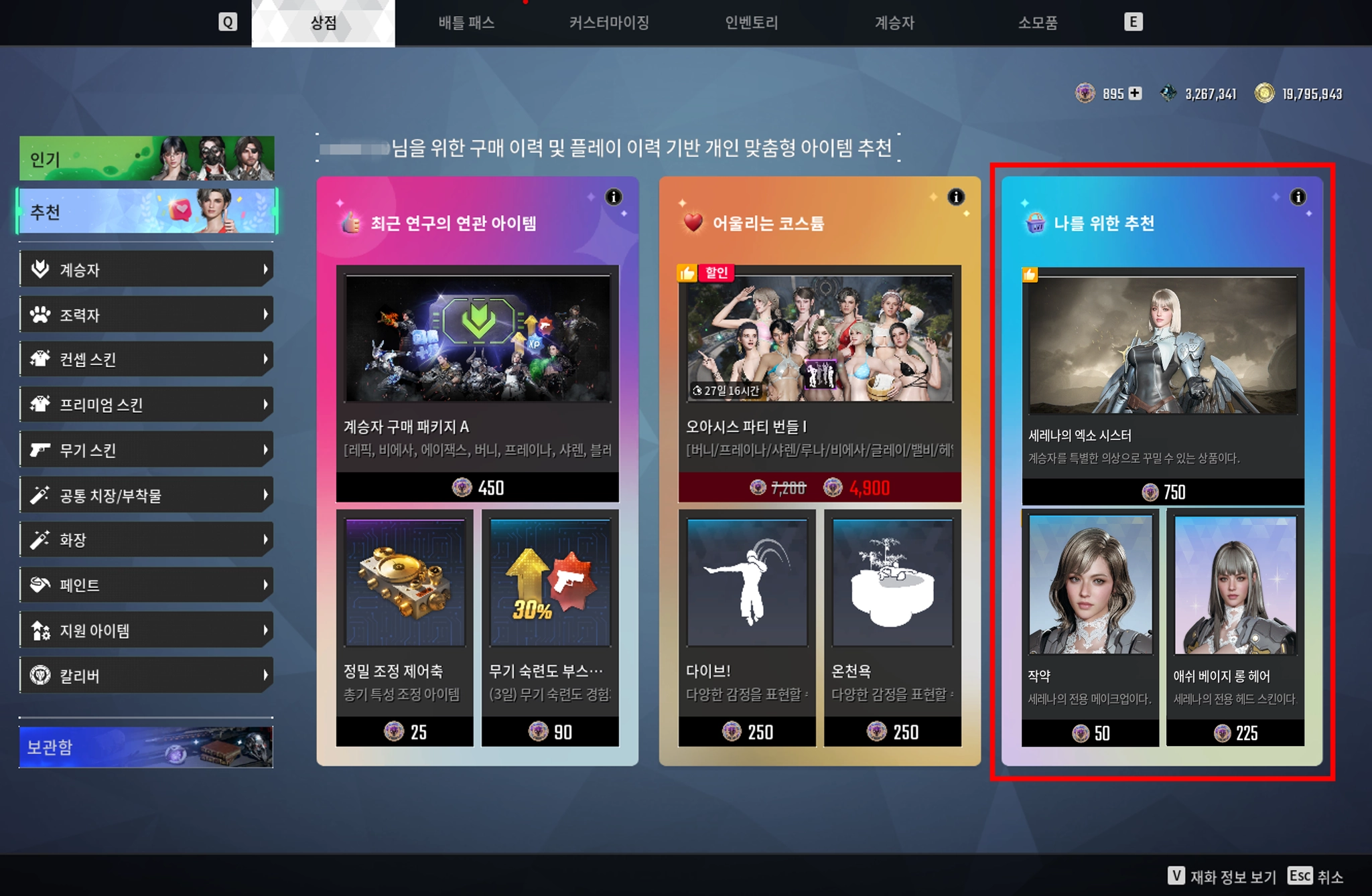 그림 1: 퍼스트 디센던트 상점 내 상품 추천 화면