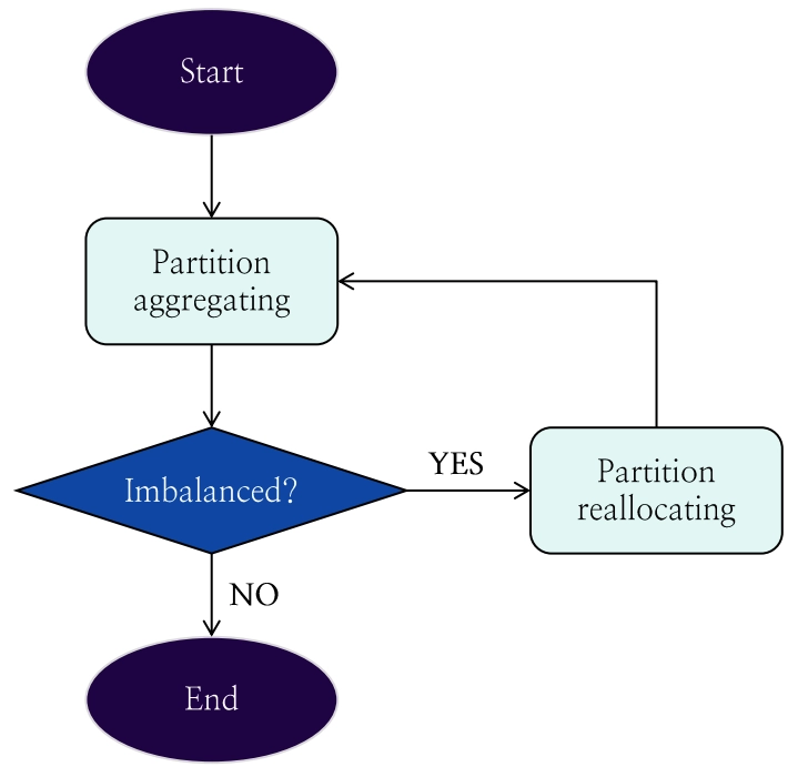 작업 1에서 생성한 Sorted Set을 기반으로 가장 큰 파티션과 가장 작은 파티션을 추출하여 크기 차이가 2 이상 벌어질 경우, 리밸런싱 작업 3을 수행하고, 그렇지 않으면 리밸런싱 작업을 종료합니다.