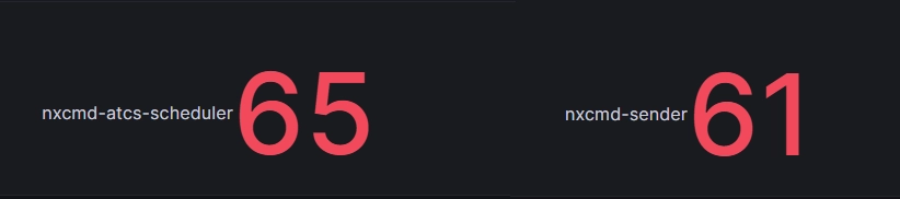 부하가 가해지는 상황 속에서 ATCS 스케줄러와 NXCommand 서버는 그림 19와 같이 처음 9대에서 각각 65대와 61대까지 파드 수가 점진적으로 증가하였습니다.