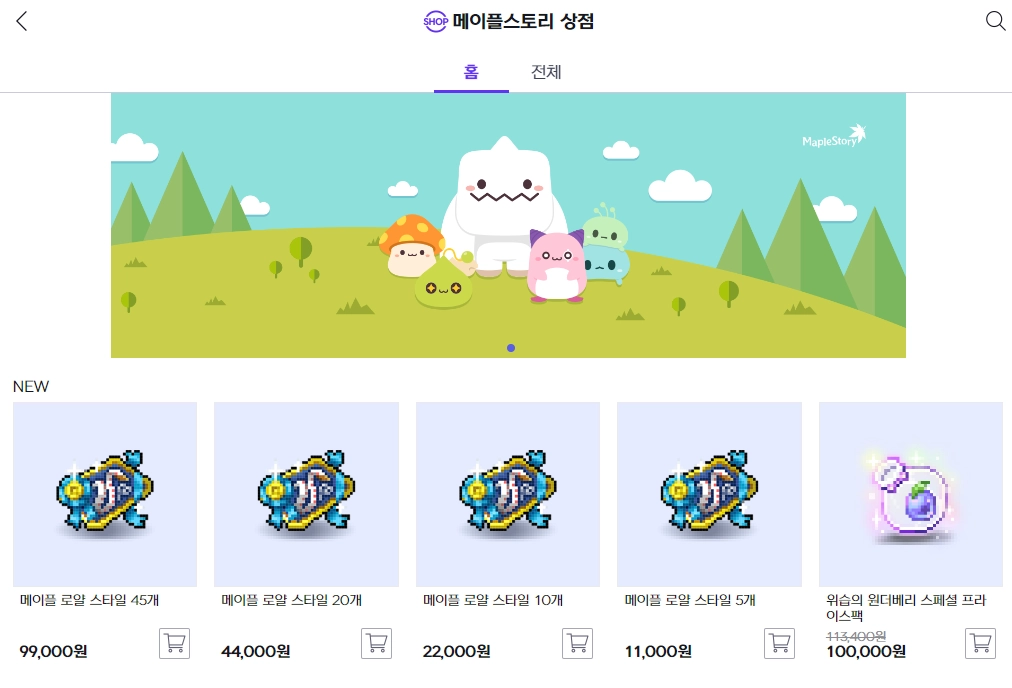 그림 2: 메이플스토리 웹상점 화면