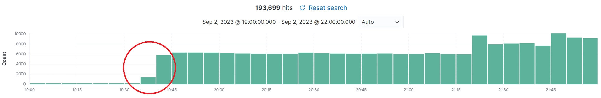 그림 10: 오후 7시 30분부터 서서히 증가하는 요청 트래픽