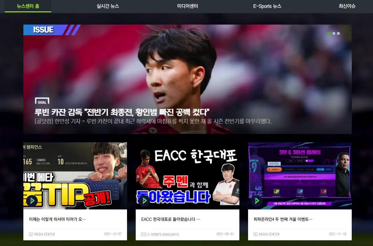 그림 1 : FC 온라인 뉴스센터 화면
