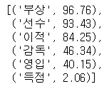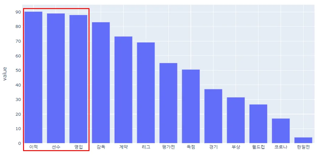 → ('리그','영입','감독','선수','경기','득점','부상', '한일전','월드컵'','평가전','이적','계약') |