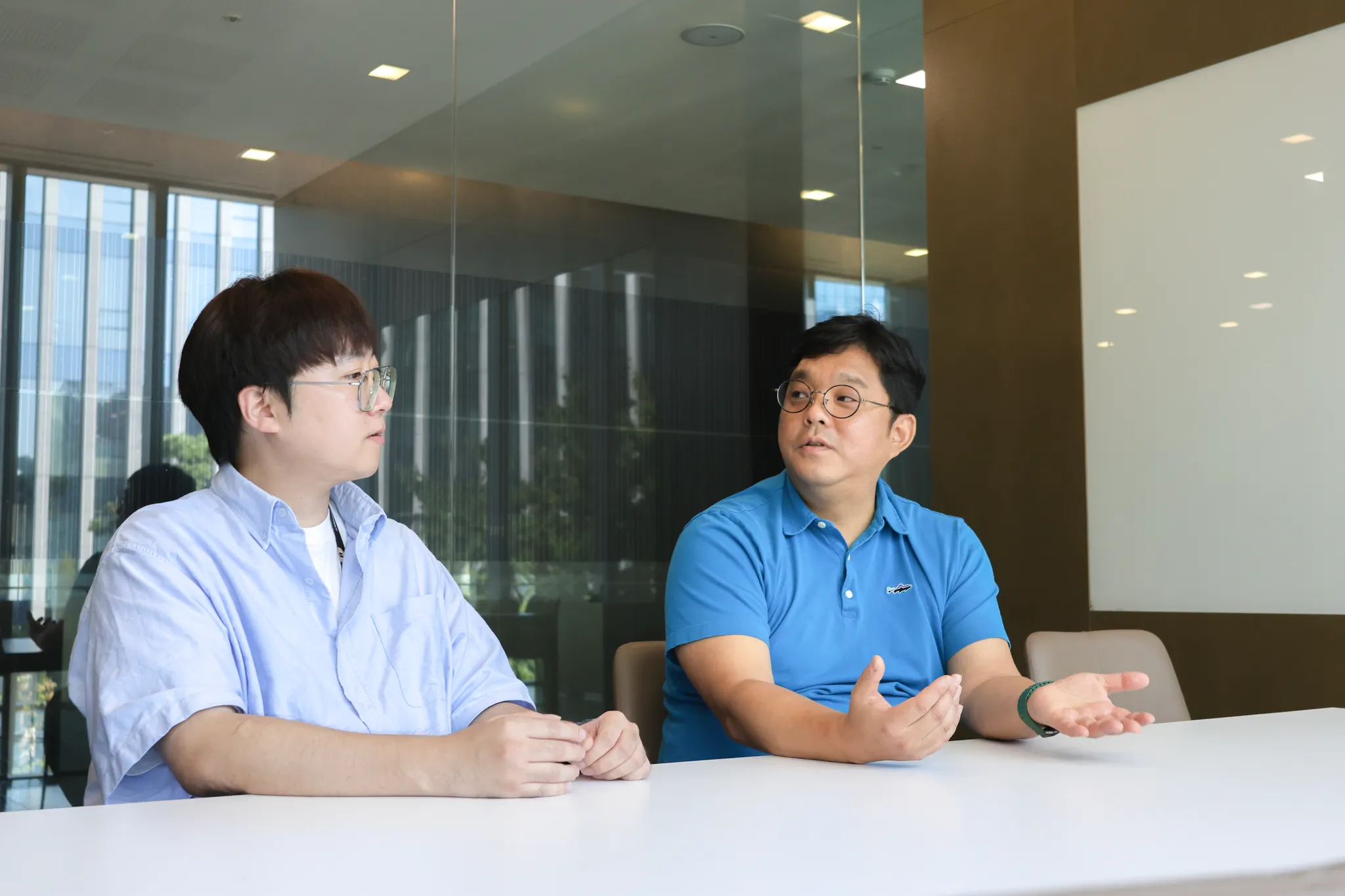 하지만 게임스케일이 게임에 효과적으로 적용되기 위해서는 게임팀과 기술 조직 간의 긴밀한 협업이 필수적인데요. 이 협업을 이끌어내는 역할을 바로 게임스케일 매니저가 담당하고 있답니다. 이번 콘텐츠에서는 게임스케일 매니저로 구성된 게임스케일매니저1팀과 라이브협력팀의 든든한 기둥, 백승대 팀장님과 박태용 팀장님을 모시고 게임스케일 매니저 직무에 대해 자세히 알아보겠습니다