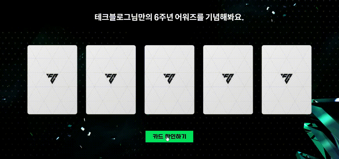 마지막으로 GSAP를 활용해 카드 오픈 이펙트를 연출한 방법을 공유하며 마무리하겠습니다.