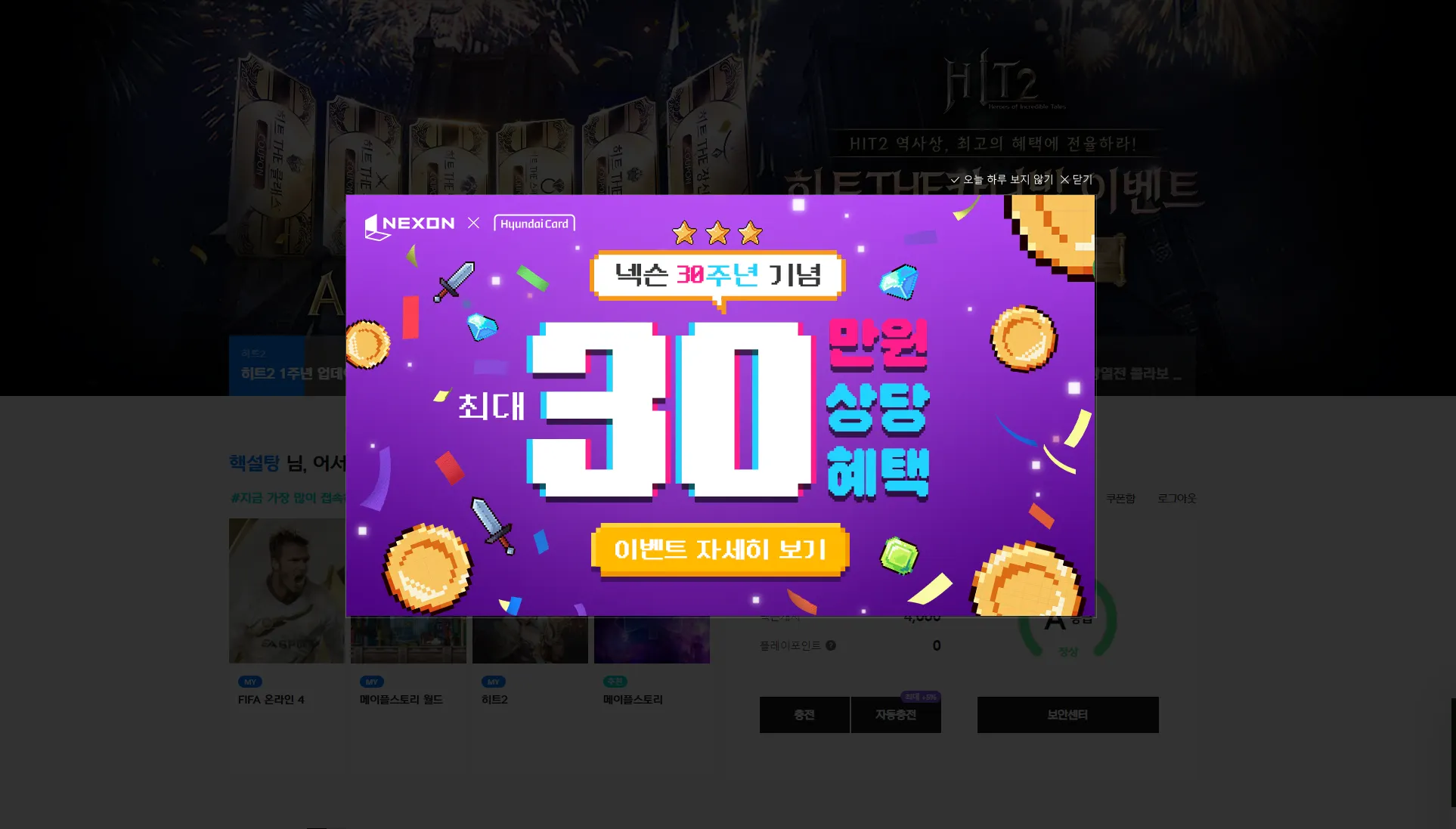 그림 2: 넥슨 홈페이지 로그인 직후 노출되는 콘텐츠 화면