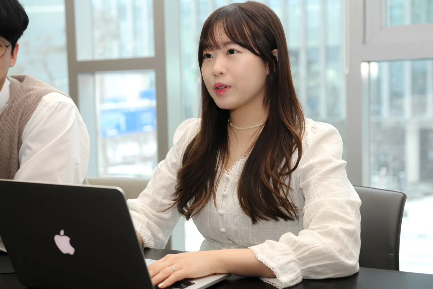 저희 팀 분위기는 자유로워요. 매일 데일리 스크럼을 진행하는데 현재 동료들이 어떤 작업을 하고 있는지, 팀은 어떻게 돌아가고 있는지를 알 수 있어요. 작업을 하다 보면 자신의 일에만 집중하게 되어 시야가 좁아질 수 있는데 데일리 스크럼을 통해서 시야가 넓어질 수 있어요. 프론트 파트는 개발하다 얻은 꿀팁이나 어떻게 문제를 해결했었는지를 공유하고 코드 리뷰를 통해 더 나은 소스를 만들기 위해 노력하고 있습니다. 문제를 해결할 때 더 나은 결과물을 도출하기 위해 자유롭게 토론하고 개선해 나가며 작업을 진행하고 있습니다. 혼자 고민을 해결하는 게 아니라, 모르는 게 있다면 언제든지 물어보고 답변해 주며 서로 성장해 가고 있어요.