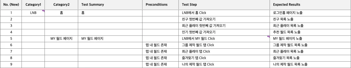 어설션, 즉 테스트의 기댓값과 결과를 비교하는 로직을 구성하는 일은 테스트 코드 작성에서 중요한 문제인데요, QA 측에서 제공해준 공통 테스트 케이스 엑셀 파일과 이를 토대로 상시 모니터링에서 체크해야 할 사항이 무엇인지 함께 논의하여 공통 테스트 케이스를 확정했습니다.