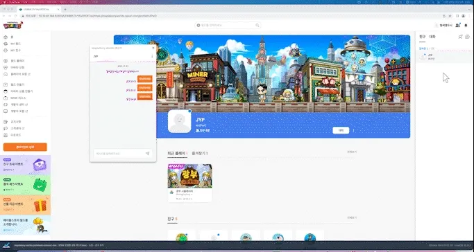 아래 gif 파일은 메이플스토리월드 포털웹에서 친구에게 대화를 걸고 대화창을 나가는 실제 테스트 화면입니다.