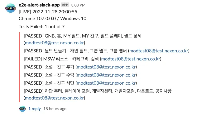 그림 14 : 슬랙 댓글 및 메일로 테스트 결과 리포트를 담은 html 파일이 전송됩니다.