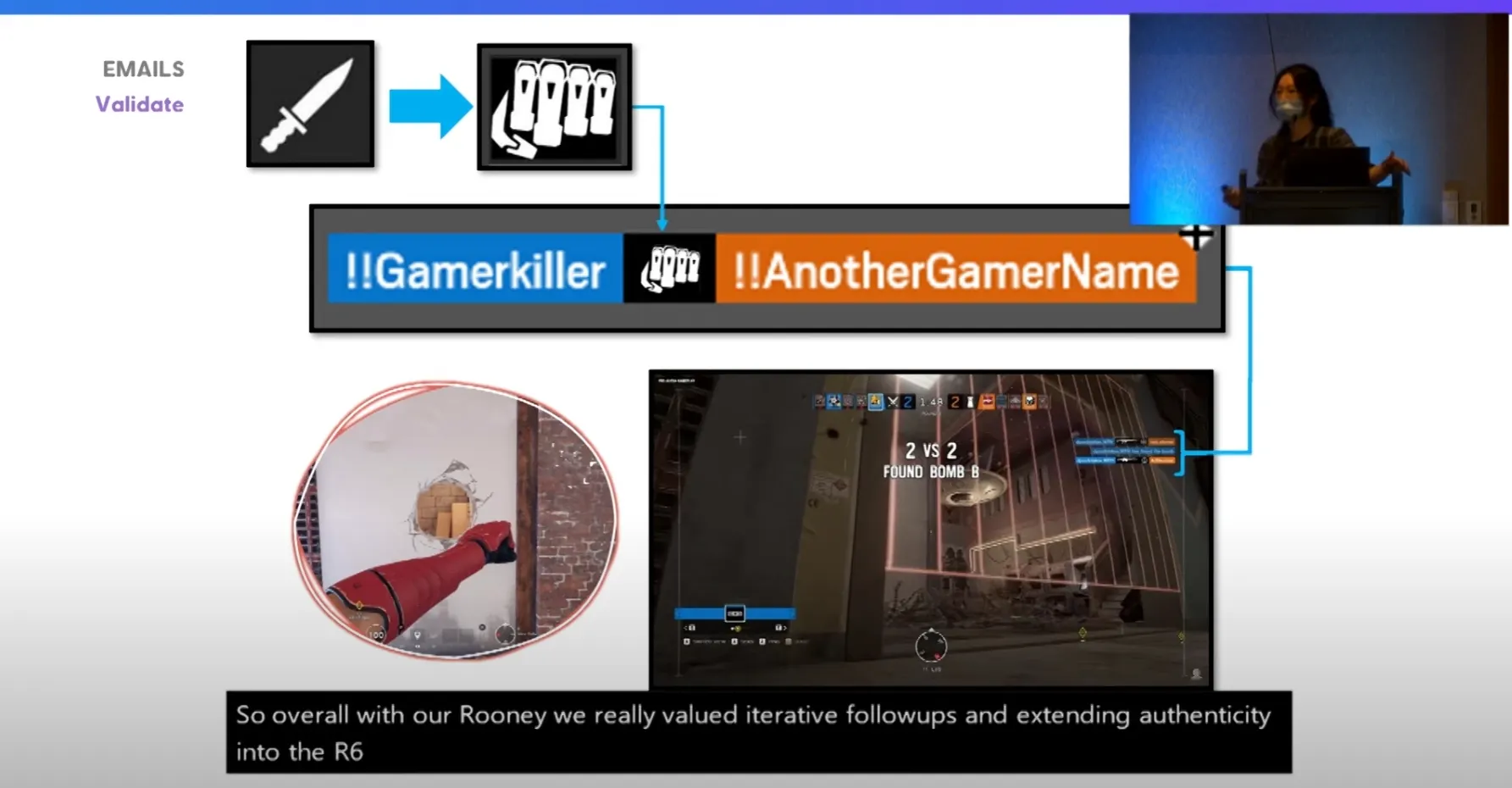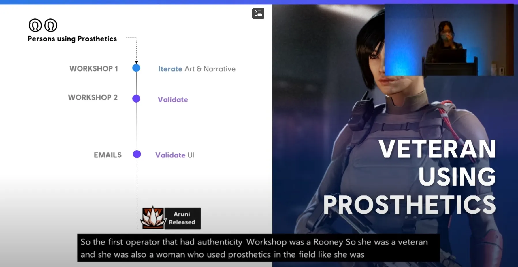 Ubisoft 몬트리올에서 Rainbow Six Seige 타이틀 작업을 맡았던 발표자 Tina Chan은 UX 리서치를 통해 소수자 캐릭터의 고유성을 증대 시키고 개선 시킬 수 있다고 이야기 합니다.
