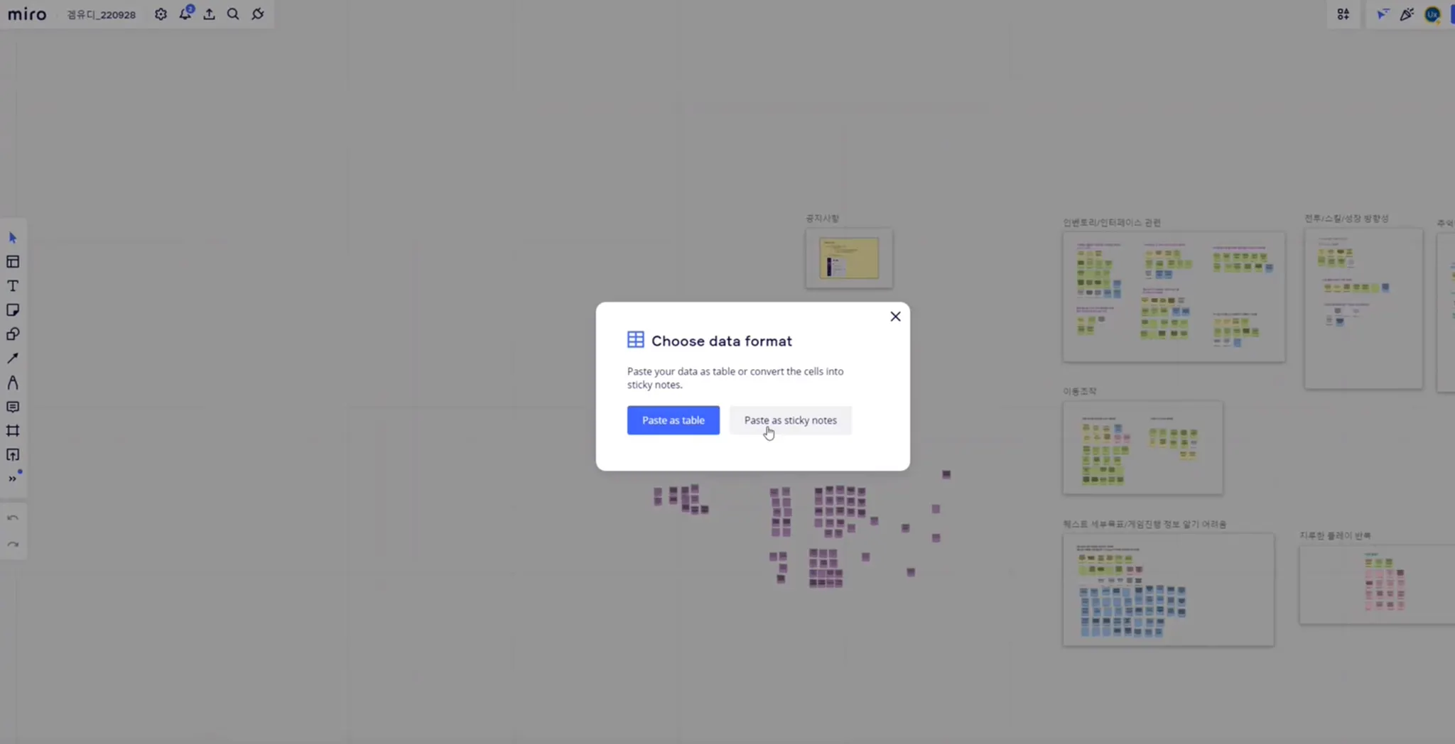 그림 5: ① 엑셀 데이터 포스트잇 형태로 붙여넣기
