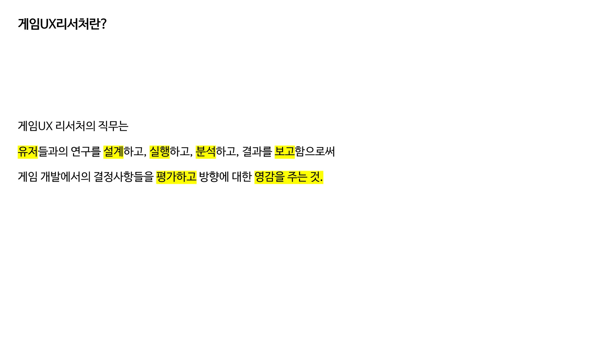 그림 9: 스터디 발표 내용 中 게임UX리서처 직무 정의