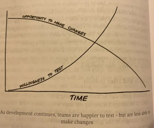 그림 11: 스터디 발표 내용 中 "게임 개발이 진행 될수록 개발팀의 (유저) 테스트에 대한 니즈는 늘어가지만, 테스트의 결과물을 적용해 의미 있는 변화를 만들기 어려워진다.”