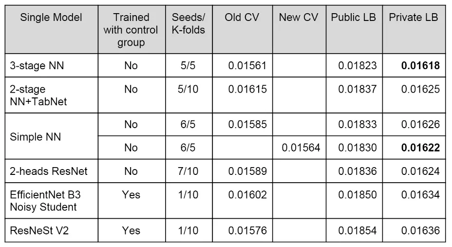 캐글에서 2020년 있었던 대회인 MoA(Mechanisms of Action Prediction)[11] 우승팀이 TabNet을 사용했습니다. 대회나 우승 솔루션에 대한 자세한 내용보다는 성능과 결과 위주로 소개 드리겠습니다.