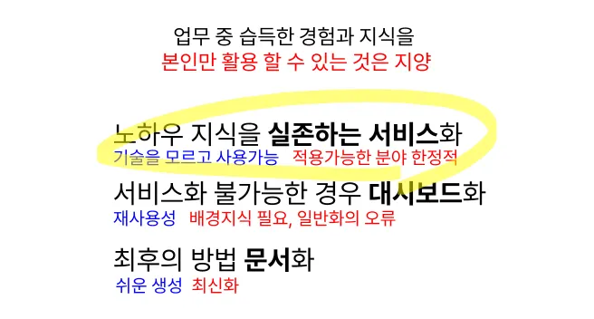업무 중 습득한 운영 경험과 노하우를 개인만 활용하는 것을 지양
