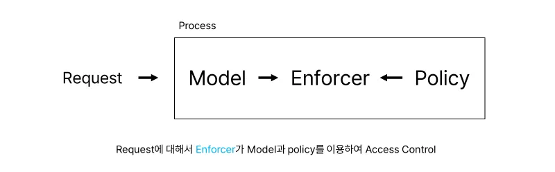 매번 추가되는 정책을 처리하기 위해 python 코드를 수정하기보다 Casbin의 PERM 모델을 정의하여 다양한 접근 제어(Access Control)를 처리하게 하고 코드 작업 없이 정책 기반으로 조건 처리하고자 했습니다.